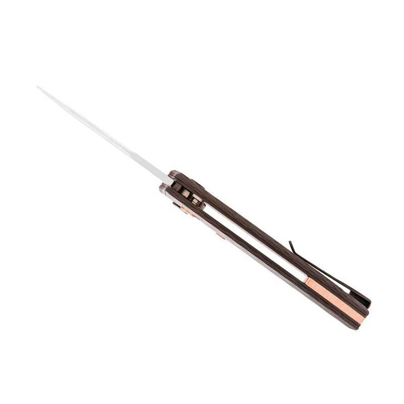 Le modèle Impact est le tout premier couteau automatique de la marque Buck Knives. Il s’agit ici d’une Ă©dition limitĂ©e appartenant Ă la collection Legacy, le couteau automatique Buck Impact 0898CFSLE1 intègre une lame spear point mesurant 79mm de longueur, elle est fabriquĂ©e en acier S35VN. Pour information, cette mĂŞme lame bĂ©nĂ©ficie d’une finition satinĂ©e, elle est Ă©galement dĂ©corĂ©e par le logo Buck USA au niveau du coin supĂ©rieur droit de la face avant. Le manche du couteau automatique est fait de fibre de carbone noir, un matĂ©riau lĂ©ger, solide, rĂ©sistant au froid, Ă la chaleur, aux chocs ainsi qu’aux produits chimiques. Il intègre aussi un bouton d’ouverture et de sĂ©curitĂ© en cuivre ne manquant pas d’attirer le regard, l’attention, et permettant de dĂ©ployer la lame Ă la vitesse de l’Ă©clair. Le verso de la poignĂ©e comprend un clip de ceinture revĂŞtement Cerakote noir permettant de faciliter le port du couteau automatique Buck Impact. Couteau livrĂ© dans une boĂ®te cadeau magnĂ©tique accompagnĂ© de son certificat d’authenticitĂ©.
