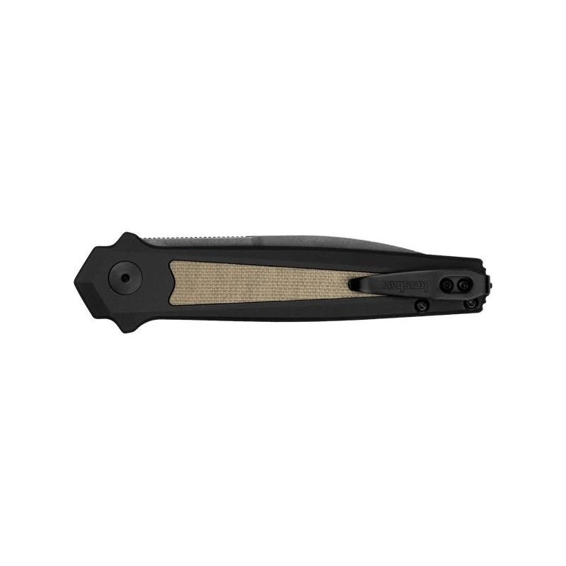 Le manche en aluminium est Ă©purĂ© et dispose d’une incrustation en micarta des deux cĂ´tĂ©s. Le bouton de dĂ©ploiement est de faible profil pour minimiser les risques de dĂ©ploiement accidentel de la lame. Le clip de poche rĂ©versible permet un transport facile dans la poche.