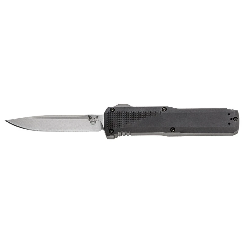 Avec son allure semi-tactique, le Benchmade Auto Phaeton BN4600 est un couteau automatique OTF (ouverture frontale) qui va beaucoup plaire. Il possède un manche noir en aluminium anodisĂ© (6061-T6) avec diffĂ©rentes textures pour la touche stylĂ©e. De longueur 117mm, la poignĂ©e noire assure Ă©galement une prise en main ferme et sĂ»re, ainsi qu’une facilitĂ© de transport quotidienne. Un transport qui est d’autant plus facilitĂ© par la prĂ©sence d’un clip rĂ©versible : de quoi emporter le couteau automatique Benchmade Auto Phaeton partout oĂą vous irez ! Au niveau de la lame, elle mesure 88mm de long avec une fabrication en acier inoxydable CPM S30V (profil Drop Point). Une lame tranchante/rĂ©sistante Ă la corrosion qu’il sera possible de graver par un texte au choix (voir bouton ajouter une gravure ci-dessous). Rappelons que le Benchmade Auto Phaeton BN4600 est un couteau automatique OTF (Out The Front), avec lame Ă©jectĂ©e droit devant.