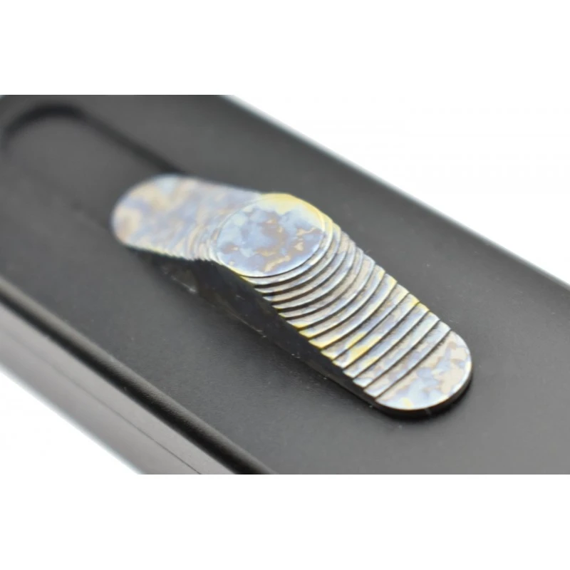 Cet automatique à ouverture frontale, Golgoth G12G+, a une lame glaive de 88mm de longueur, conçue en D2, un acier des plus qualitatifs. Cette forme de lame accentue la pointe et offre une forte puissance de pénétration. Rainurée au centre, la lame glaive est marquée par le logo Golgoth sur la partie basse et se personnalise par gravure.