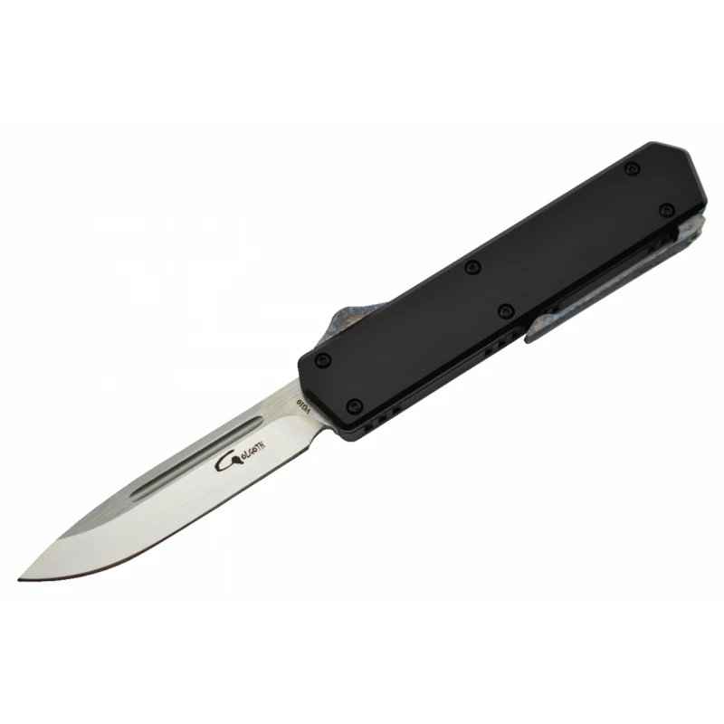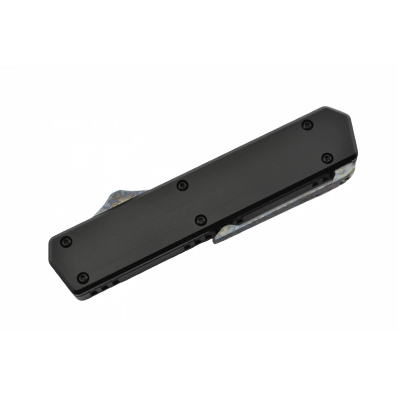 Offrant une rĂ©activitĂ© Ă toute Ă©preuve, le couteau automatique OTF Golgoth G13DP+ possède un manche noir en aluminium anodisĂ©. Sa longueur de 115mm fait qu’il sera facilement transportable au quotidien. Il accueille un bouton Ă faire coulisser (servant Ă Ă©jecter la lame) ainsi qu’un clip sur le cĂ´tĂ©, deux Ă©lĂ©ments en titane anodisĂ© crazy. Cette anodisation apporte couleur et originalitĂ© : vous allez l’adorer !