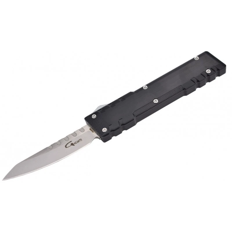 Le Golgoth G5 est un couteau automatique OTF possĂ©dant un manche en aluminium 6061-T6 noir avec anodisation dure : il est extrĂŞmement robuste et ergonomique, il tient parfaitement bien en main. Au dos du manche, se trouve un clip-ceinture en acier inoxydable, rĂ©sistant Ă la rouille, dĂ©corĂ© par le logo Golgoth : il permet bien entendu de pouvoir transporter le couteau automatique OTF avec plus d’aisance. Sur le cĂ´tĂ© de la poignĂ©e, on observe un bouton poussoir latĂ©ral, très facile d’accès, permettant un dĂ©ploiement rapide de la lame qui est Ă©jectĂ©e par l’avant. Une lame qui sur ce modèle Golgoth G5, mesure 72mm de long, elle est fabriquĂ©e en acier 154CM avec une duretĂ© de 60-62HRC. Tranchante et Ă©lĂ©gante, la lame du couteau automatique OTF Golgoth G5 est Ă personnaliser par une inscription au choix (option facultative en supplĂ©ment).