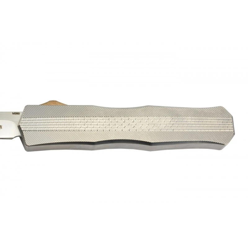 Le couteau automatique OTF Golgoth G7 garantit un tranchant de très haute qualitĂ© par le biais de sa lame de 72mm en acier M390 (60-62HRC). Elle est aussi dĂ©corĂ©e par le logo Golgoth, elle se personnalise par procĂ©dĂ© gravure, amusez-vous Ă inscrire le texte de votre choix via le bouton ci-dessous ! Le G7, un couteau automatique OTF d’exception signĂ© Golgoth !