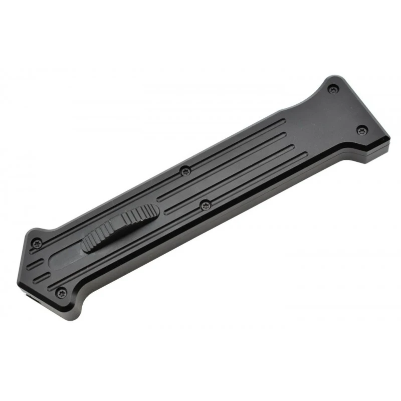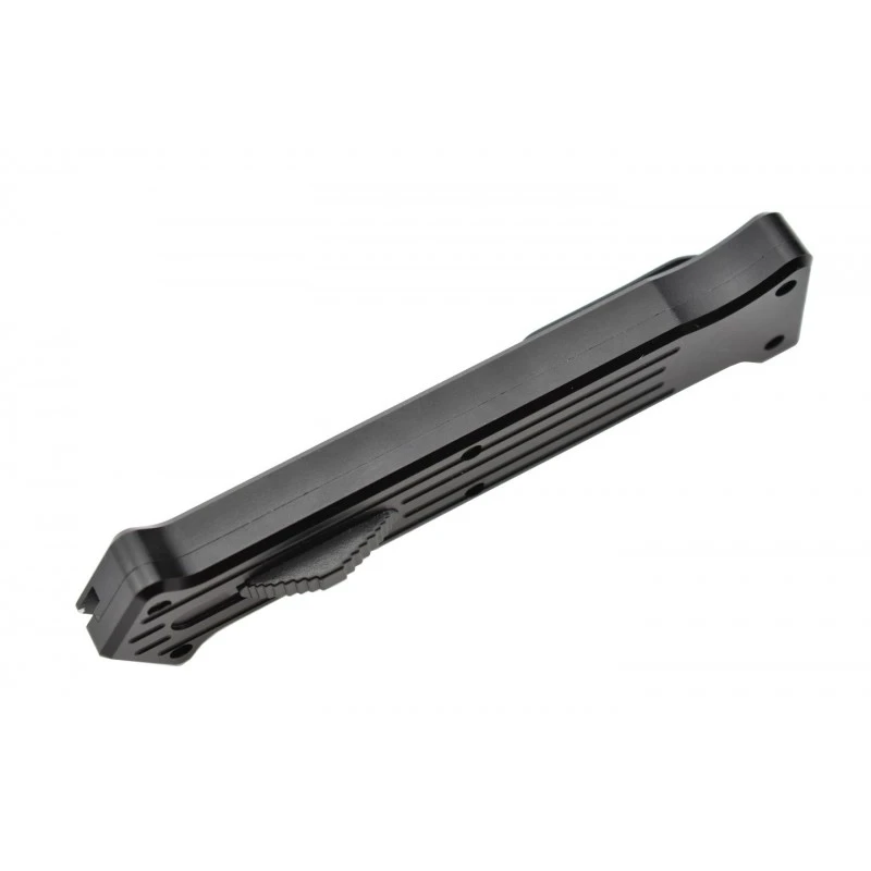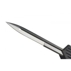 Le Max Knives Joker MKO40 est un couteau automatique OTF, comprenez que la lame s’Ă©jecte par l’avant, droit devant. Mesurant 9cm de longueur, cette dernière est faite d’acier D2, un acier qualitatif offrant d’excellentes performances. Une lame pointue qui est ajourĂ©e en son centre par une grande ligne avec extrĂ©mitĂ© ronde. Un ajour qui fait la diffĂ©rence en terme de style, de design ! La lame se dĂ©ploie rapidement sous la commande d’un bouton situĂ© sur le manche. Un manche qui est de couleur noire, et fabriquĂ© en aluminium anodisĂ© avec rainures pour l’Ă©lĂ©gance et l’ergonomie. La facilitĂ© de transport est assurĂ©e par un clip de poche en acier avec revĂŞtement noir afin d’ĂŞtre en parfaite harmonie avec le couteau automatique, un clip qui est marquĂ© par le logo Max Knives. Le Joker MKO40, un OTF fiable signĂ© Max Knives !
