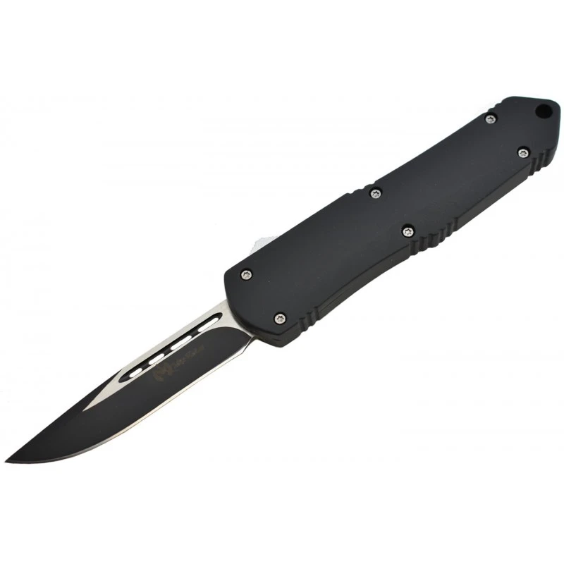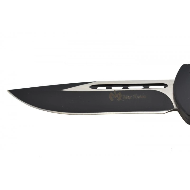 Le Max Knives MKO43 est un couteau automatique Ă ouverture frontale (OTF) au style tactique. Son manche en aluminium noir de 123mm de longueur est agrĂ©able Ă tenir en main, il intègre un trou pour cordon en bout Ă l’origine d’une meilleure transportabilitĂ©. Sur la tranche de la poignĂ©e, on observe un bouton Ă faire glisser qui permet d’actionner la lame « droit devant ». LivrĂ© avec son Ă©tui ceinture en nylon afin de toujours conserver le couteau automatique sous la main lors des dĂ©placements.