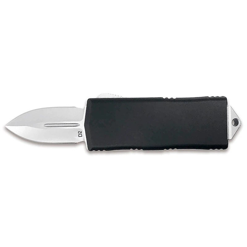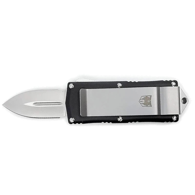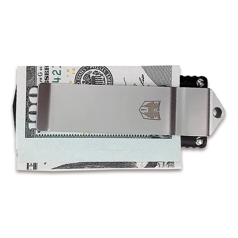 Le Money Clip CobraTec est un petit couteau automatique Ă ouverture frontale, type OTF, possĂ©dant un clip servant Ă faciliter les dĂ©placements ou encore faisant office de porte-billets pour ne jamais partir sans argent. Vos billets seront solidement attachĂ©s, aucune chance donc de les perdre, ce qui serait fort dommage ! Le couteau automatique OTF CobraTec Money Clip possède un manche noir en aluminium aĂ©ronautique (6061-T6) mesurant Ă peine 9cm de long afin de pouvoir le glisser très facilement dans une poche de petite taille. Sur le cĂ´tĂ©, on retrouve bien sĂ»r un bouton poussoir permettant d’Ă©jecter Ă vive allure la petite lame de 45mm en acier D2. Une lame qu’il sera bien entendu possible de personnaliser par le biais du procĂ©dĂ© gravure. Le Money Clip CobraTec, un couteau de poche qui allie le mĂ©canisme automatique OTF au porte-billets !