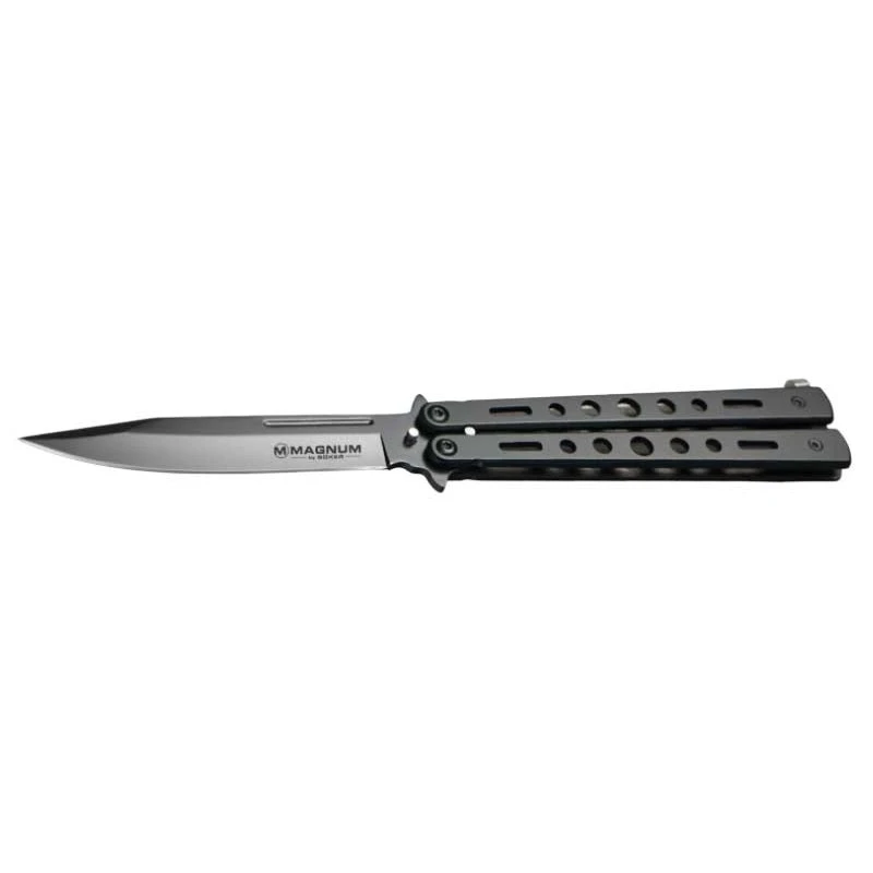 Le cĂ©lèbre balisong Böker Magnum dans sa version All Black (tout noir) est un papillon dotĂ© d’une lame de 102 mm au tranchant lisse et d’un manche en acier. Facile Ă manier, ce modèle vous permettra de faire des figures de style avec aisance.