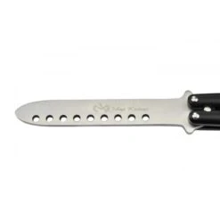 Un magnifique couteau papillon que signe ici Martinez Albainox, fabricant Espagnol Ă succès. Un balisong que l’on apprĂ©cie pour son manche courbĂ© orange fabriquĂ© en ABS/aluminium, avec dĂ©cor impression photographique 3D. En plus d’ĂŞtre très esthĂ©tique, le manche se montre Ă©galement très maniable (excellente prise en main) ainsi que très transportable en toutes circonstances (longueur d’un peu plus de 140mm). Avec le couteau papillon d’entraĂ®nement Albainox Colorful Oranger 02171, l’utilisateur pourra se perfectionner au maniement du balisong n’importe oĂą et n’importe quand car le couteau peut se glisser facilement dans une poche ou une sacoche. Relativement lĂ©ger, ce modèle dispose aussi d’une lame de longueur 9cm fabriquĂ©e en acier inoxydable (rĂ©sistance Ă la rouille/corrosion), elle est sublimĂ©e par un magnifique dĂ©cor en parfaite adĂ©quation avec celui du manche. Un balisong Albainox qui ne laissera personne indiffĂ©rent !