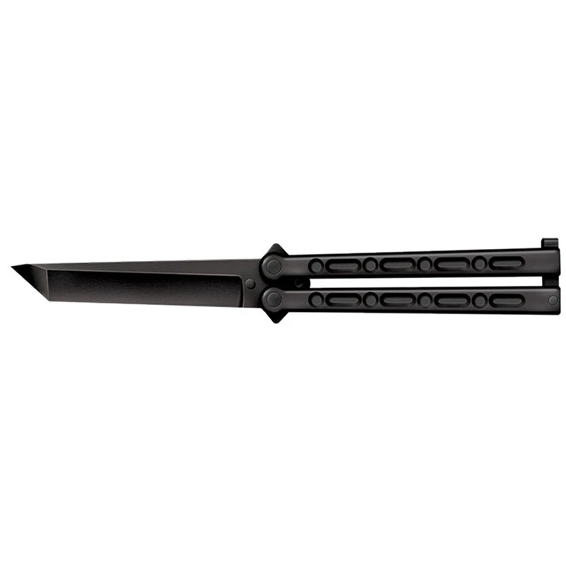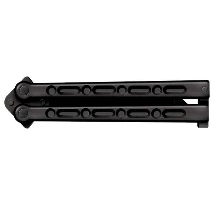 Conçu par la marque AmĂ©ricaine Cold Steel, ce couteau papillon CS92EAB, FGX Balisong, est entièrement fait de Griv-Ex noir. Un moulage par injection qui permet de tirer les prix vers le bas, tout en assurant rĂ©sistance et lĂ©gèretĂ© (mĂ©lange de fibre de verre et polymère). De forme tanto, la lame de 127mm de longueur prĂ©sente une pointe renforcĂ©e ultra-performante, capable de perforer avec puissance ! Le manche noir de 153mm de long vous apportera du confort lors de chaque utilisation, il faut dire qu’il est agrĂ©able de le tenir en main. Le poids du couteau papillon FGX Balisong Cold Steel CS92EAB ainsi que le loquet de retenue vous permettront de le faire basculer pendant des heures avec plaisir ! Ă€ ce prix lĂ , il sera très difficile de trouver mieux ailleurs, d’autant plus que Cold Steel est une marque fiable, qui a fait ses preuves. Ce modèle CS92EAB est muni d’une lame lisse, mais vous trouverez sur le site, dans le mĂŞme style, un balisong Cold Steel avec une lame noire lisse/dentĂ©e (voir accessoires en bas de page).