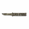 Ce couteau papillon K25 36249 dispose d’un look trĂšs militaire. En effet, il possĂšde un trĂšs beau manche vert en aluminium de longueur 12,5cm oĂč l’on peut apercevoir le logo de la marque K25 en guise de dĂ©coration. AgrĂ©able Ă utiliser, ce balisong dispose aussi d’une lame en acier inoxydable noir revĂȘtement titane marquĂ©e du texte « titanium coated » en blanc. Ă bout pointu, la lame de longueur 10cm est trĂšs tranchante et bĂ©nĂ©ficie d’une excellente robustesse notamment face Ă la corrosion. Petite prĂ©cision, l’Ă©paisseur de lame est de 3mm. Pratique, ce couteau papillon K25 est livrĂ© avec son Ă©tui en nylon camouflage appartenant Ă©galement Ă la marque K25. Bien Ă©videmment il est parfaitement adaptĂ© au couteau et permettra de le protĂ©ger avec Ă©lĂ©gance lors des interventions et missions ! Ce balisong est parfait pour tous les fans de l’univers militaire.