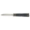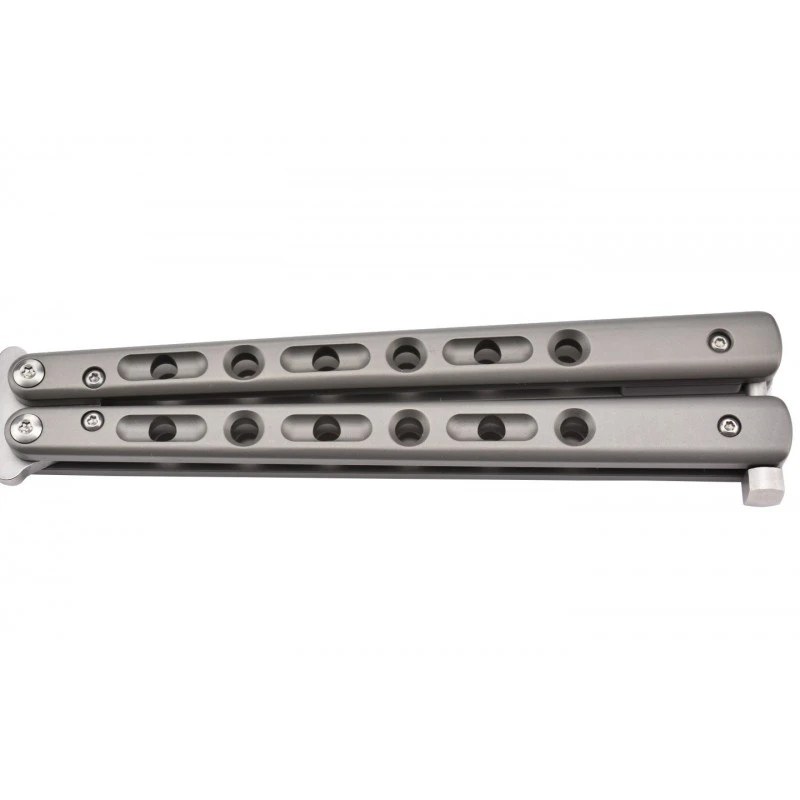 Le Max Knives P40S est un couteau papillon, dit balisong, de très haute qualitĂ©. Pour s’en rendre compte, il suffit d’observer son manche en titane gris, qui se sĂ©pare en deux parties. EsthĂ©tique, il est dĂ©corĂ© par de nombreux ajours et confère une prise en main très confortable Ă l’utilisateur. Pour information, il mesure 138mm de long ce qui ajoute une facilitĂ© de transport supplĂ©mentaire.