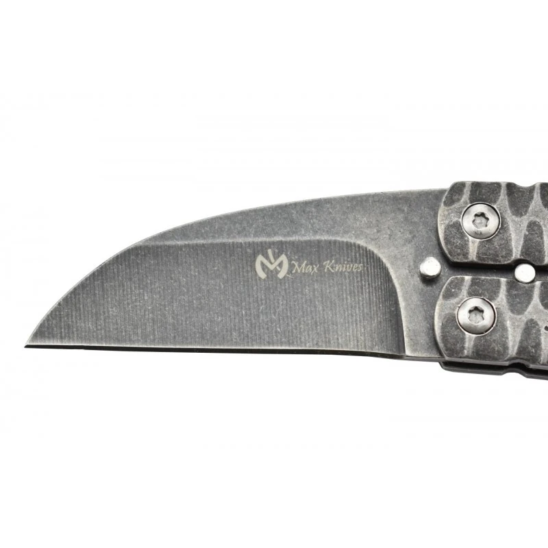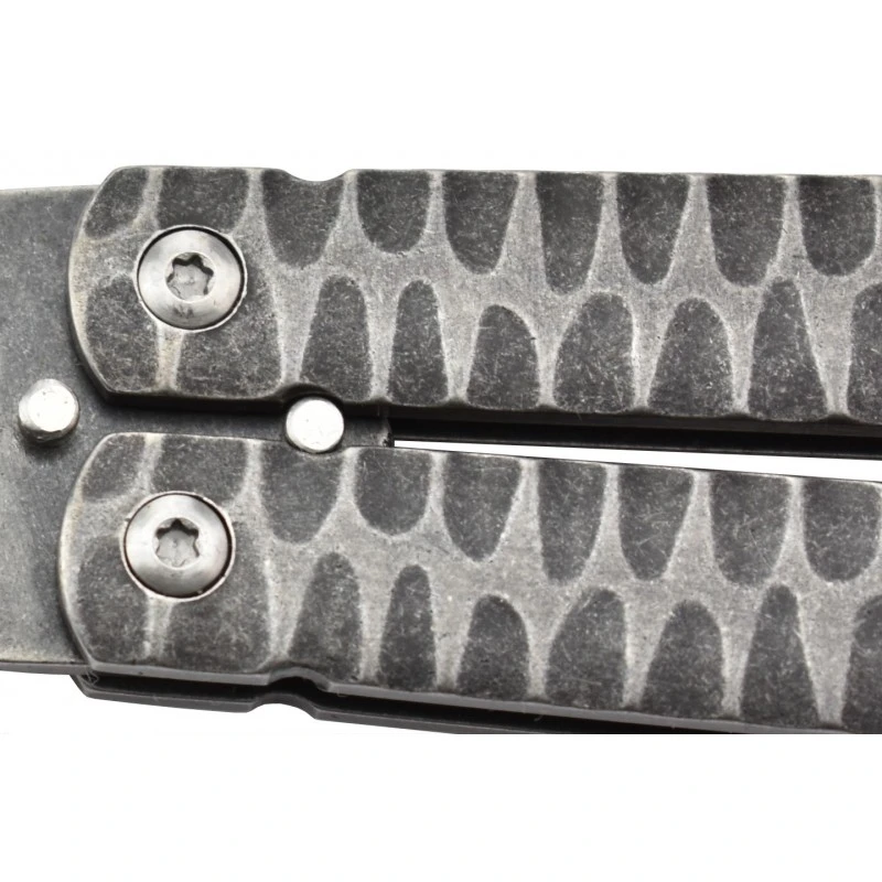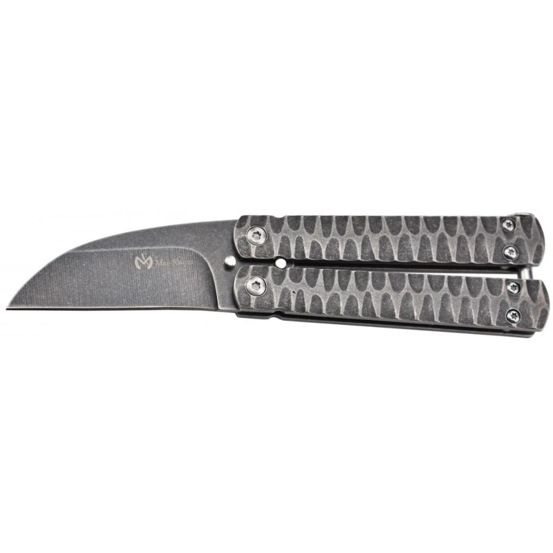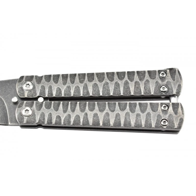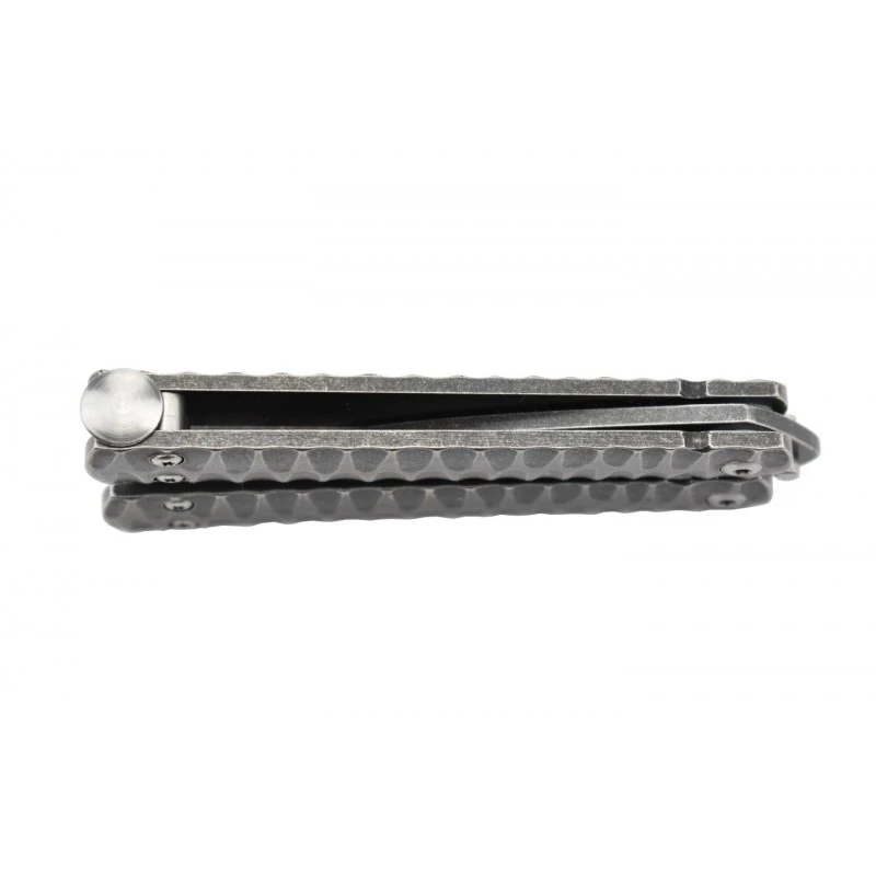 Le Max Knives P42 est un couteau papillon qui devrait beaucoup plaire Ă celles et ceux qui ont une petite prĂ©fĂ©rence pour les manches en acier. Vous l’aurez compris, sur ce balisong, le manche est fabriquĂ© en acier, avec une belle finition stonewash pour un aspect usĂ©, vieilli. Ă€ titre d’information, sachez que la poignĂ©e mesure 105mm de long ce qui offrira Ă l’utilisateur Ă©normĂ©ment de confort lors de la prise en main.