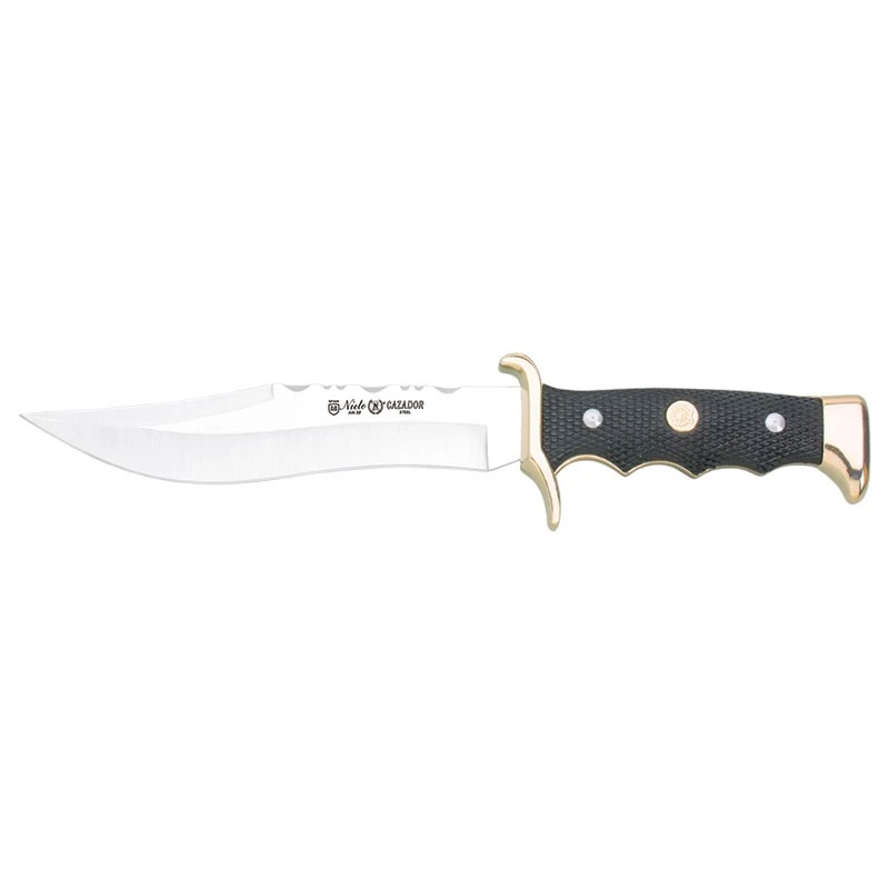 Le Gran Cazador Nieto NI2002A est une dague pourvue d’une lame de forme clip point construite en AN-58, un acier inoxydable frĂ©quemment employĂ© par la coutellerie espagnole. Mesurant 18cm de longueur, la lame est sĂ©curisĂ©e par une double garde, elle bĂ©nĂ©ficie d’un tranchant lisse. Aucune exception Ă la règle pour ce modèle qui reste marquĂ© par le sigle Nieto ainsi que l’inscription Cazador en rĂ©fĂ©rence Ă cette mĂŞme dague. PossibilitĂ© de gravure sur lame en supplĂ©ment, au niveau des deux faces de la lame.