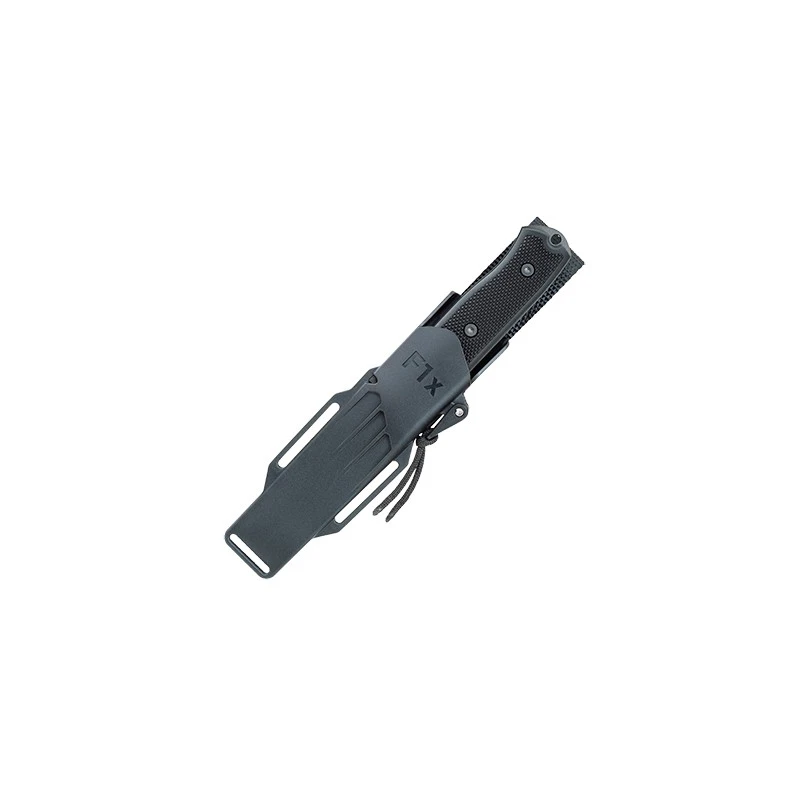 Le Fällkniven F1XB, modèle Pilot Knife, est un couteau fixe qui s’adresse aux baroudeurs, aux aventuriers, qui n’ont pas froid aux yeux. Vous l’apprĂ©cierez pour ses performances bien sĂ»r, mais aussi pour son design simple et soignĂ©, coloris noir charbon. Le poignard bĂ©nĂ©ficie d’une lame de 102mm de longueur, profil drop point, en acier lam.COS, garantissant un tranchant de haute qualitĂ©, ainsi qu’une parfaite rĂ©sistance. Au tranchant lisse, la lame noire est aussi dĂ©corĂ©e par le logo Fällkniven, marque SuĂ©doise.