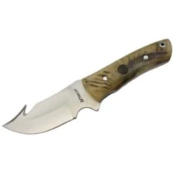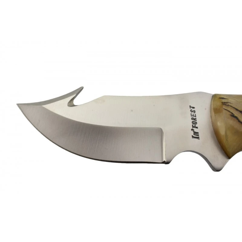Le modèle In’Forest IF3 est un poignard spécialement conçu pour la chasse, vendu à un tarif très abordable. D’une longueur totale de 225mm, il possède une lame fixe de 105mm, en acier inoxydable 440, pourvue d’un crochet à dépouiller bien pratique pour dépecer ou ôter les viscères des animaux morts. Épaisseur de la lame : 3,5mm.