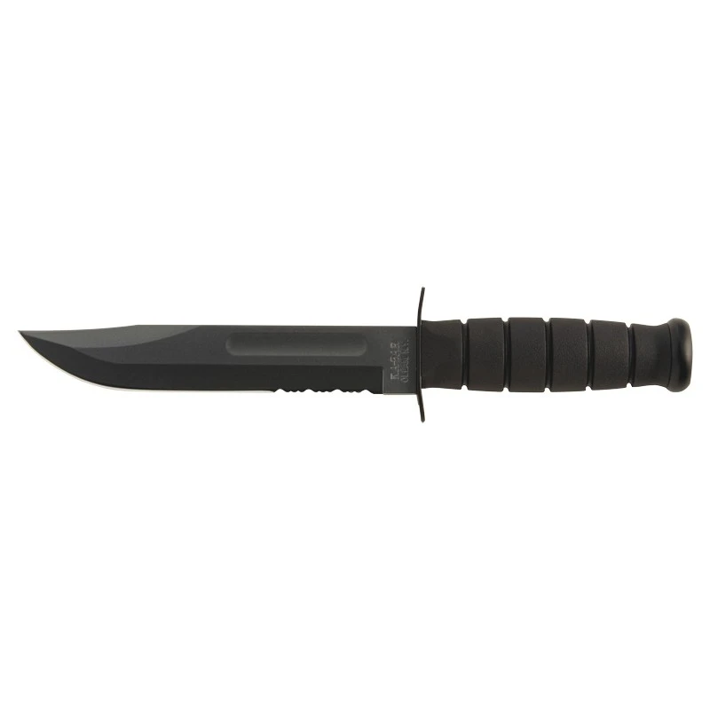 RĂ©plique contemporaine et amĂ©liorĂ©e du lĂ©gendaire modèle Mk II utilisĂ© par l’ US Navy durant la seconde guerre mondiale, Le Black USMC du coutelier amĂ©ricain Ka-Bar est un couteau de combat ultra fiable.