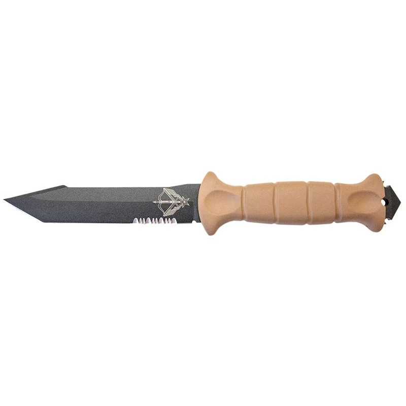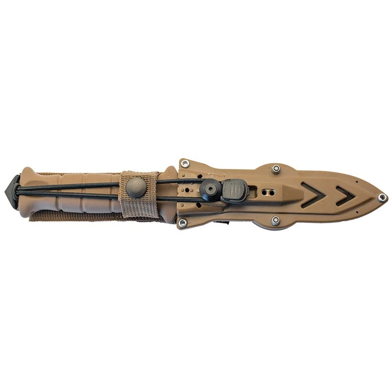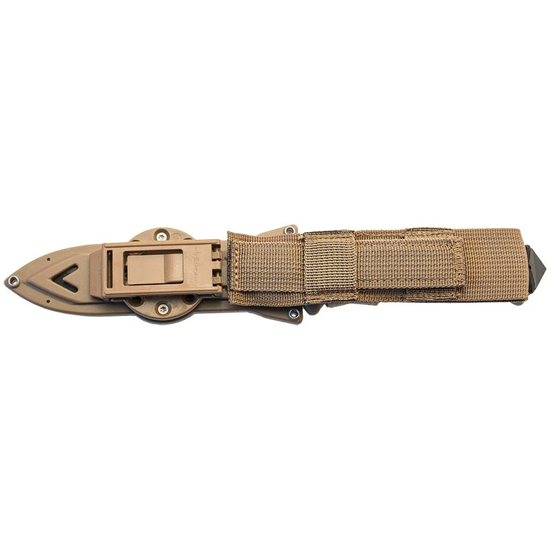 Le couteau Wildsteer Blade H4 possède un manche symĂ©trique en tactiprène coloris sable offrant un grip soft touch doux et confortable. D’ailleurs, on observe deux Ă©videments de rotation permettant de rendre la maniabilitĂ© extrĂŞmement bonne. Le Blade H4 intègre Ă©galement un brise-vitre pour les situations d’urgence, comme casser la verrière d’un hĂ©licoptère par exemple. Votre poignard Wildsteer vous sera livrĂ© avec son Ă©tui POM en nylon avec attache MOLLE.
