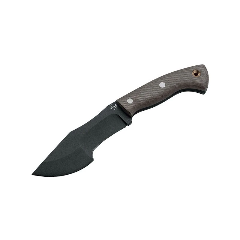 Pour travailler efficacement sans fatigue, vous pourrez toujours compter sur le Böker Plus Mini Tracker. Ce poignard se dote d’une lame fixe de couleur noire en acier carbone 1095 offrant une excellente protection contre la corrosion. Discrètement dĂ©corĂ©e par le logo Böker Plus dans le coin supĂ©rieur, la lame de 135mm de long pour 5mm d’Ă©paisseur est idĂ©ale pour hacher, couper, gratter, creuser ou encore lever. Parfaitement Ă©quilibrĂ©, le poignard Mini Tracker de chez Böker Plus, rĂ©fĂ©rence 02BO027, se dote d’un manche en micarta olive finement texturĂ© et très ergonomique. Testez-le par vous-mĂŞme, vous verrez que son confort de prise en main est très bon, pour ne pas dire excellent. RivetĂ©, le manche intègre aussi un rivet dĂ©coratif creux en laiton faisant Ă©galement office de passe-lacet. De sorte Ă ce que la transportabilitĂ© soit aussi bonne que possible. Le Böker Plus Mini Tracker est livrĂ© avec un Ă©tui de transport type kydex.