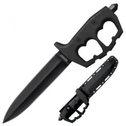 Ce couteau tactique est Ă©quipĂ© d’un manche en aluminium 6061 renforcĂ© avec pour protection contre d’Ă©ventuelles attaques ennemies, des anneaux en « D » permettant une prise en main totalement sĂ»re et confortable. L’Ă©pais pommeau conique en acier carbone 1055 permettra de vous en servir comme marteau et donner des coups avec force. Vous pourrez Ă©galement l’utiliser pour briser les vitres d’un vĂ©hicule en cas d’accident.