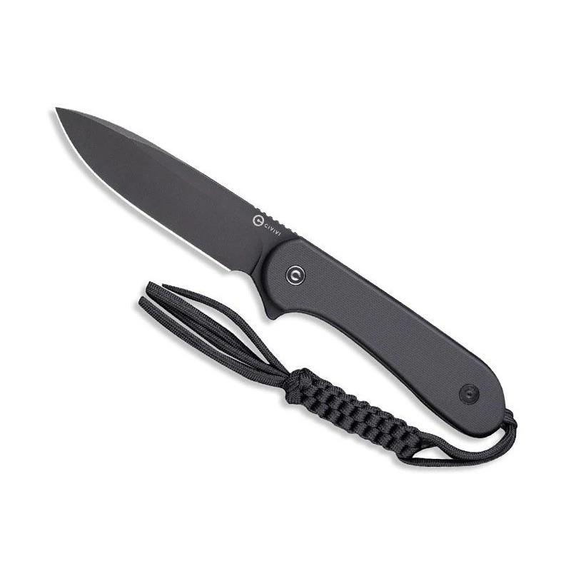 Ce poignard Civivi Elementum, modèle C2105A, sĂ©duit Ă©normĂ©ment en raison de son apparence totalement noire. Ce couteau fixe possède une lame mesurant 10cm de long et Ă la finition blackwash, elle est fabriquĂ©e en D2, un acier de grande qualitĂ©. D’Ă©paisseur 3,5mm, la lame noire est marquĂ©e par le logo Civivi en blanc pour une parfaite visibilitĂ© par procĂ©dĂ© contraste, il est possible de venir graver la lame en supplĂ©ment afin de rendre le poignard unique. Le manche est lui conçu en plaquettes G10 coloris noir, il est aussi embelli par le logo Civivi aux couleurs contrastĂ©es. En bout de poignĂ©e on observe une lanière paracord noire apportant style et utilitĂ©, notamment lors des situations de grande urgence. Le poignard Civivi Elementum C2105A est livrĂ© avec son Ă©tui rigide noir de type Kydex. Un poignard des plus redoutables pour vos activitĂ©s de plein air !