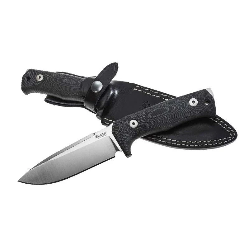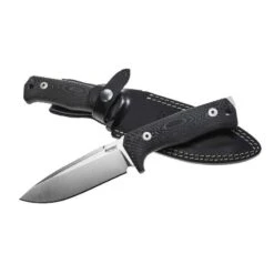 Conçu par le designer Michele Pensato aka « Molletta« , ce poignard LionSteel T5 est muni d’un manche très ergonomique conçu en micarta gris/noir. Un manche qui est fabriquĂ© Ă partir de la technologie SOLID (manche monobloc taillĂ© en centre d’usinage Ă partir d’une seule pièce de matière). Pour information le manche gris/noir en micarta mesure environ 12,5cm de longueur. La lame de ce poignard LionSteel T5.MI est conçue en acier Niolox satinĂ©, elle mesure 13cm de longueur et peut ĂŞtre personnalisĂ©e par gravure. Ă€ noter qu’elle est discrètement dĂ©corĂ©e par le logo LionSteel au niveau de la face avant. Ce couteau Ă lame fixe LionSteel T5 micarta gris/noir mesure donc au total plus de 25cm de longueur. Un grand poignard de haute qualitĂ© qui fera le bonheur des chasseurs, passionnĂ©s de bushcraft ou autres activitĂ©s Outdoor. LivrĂ© avec son Ă©tui en cuir noir Ă double coutures.