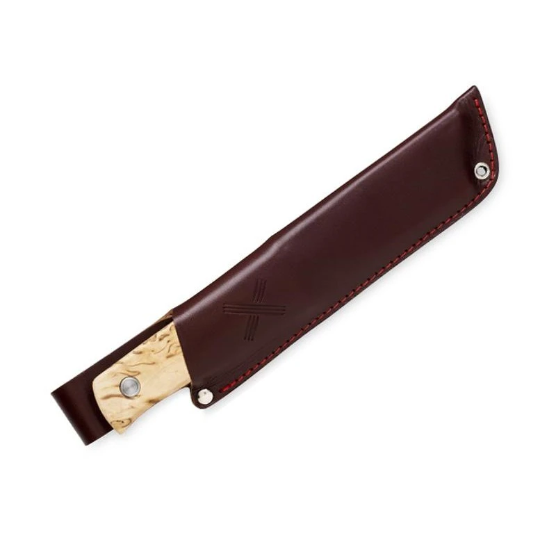 Le manche du poignard Marttiini Tundra CB est en bouleau fraisĂ© avec intercalaires rouges, il a une allure Ă la fois traditionnelle et moderne. Ă€ noter qu’en cas de besoin, les pièces du manche peuvent ĂŞtre resserrĂ©es. Longueur de la poignĂ©e : 11cm, pour un Ă©quilibre parfait, poignard pour le bushcraft Marttiini livrĂ© avec un Ă©tui de protection en cuir marron.