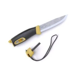 Voici le poignard Mora Companion Spark 13573 dont le manche est fabriquĂ© en gomme noire, avec extrĂ©mitĂ©s coloris jaune sable pour la touche design/moderne. Ergonomique, le manche intègre une tige allume-feu qui comme son nom l’indique, vous permettra d’allumer un feu avec Ă©normĂ©ment de facilitĂ©. Il faut dire que la lame de 105mm en acier inox Sandvik 12C27 dispose d’un dos bien affĂ»tĂ© idĂ©al pour faire des Ă©tincelles ! On comprend donc beaucoup mieux pourquoi ce poignard Morakniv Companion Spark noir/jaune sable est tant prisĂ© des aventuriers et amateurs de bushcraft. Les plus de ce modèle : manche antidĂ©rapant et compact (longueur 126mm), lame personnalisable par gravure et livraison dans un Ă©tui rigide coloris jaune sable. Morakniv, un fabricant soucieux du dĂ©tail !