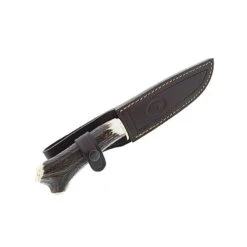 Grâce Ă la forme de la lame, on reconnaĂ®t ici assez facilement qu’il s’agit du modèle Muela Ranger. Toutefois, nous sommes ici en prĂ©sence du poignard Muela Ranger 9251 reconnaissable assez facilement pour son manche en bois de cerf vĂ©ritable avec dĂ©part d’Ă©pois. Un manche Ă l’aspect très naturel qui sĂ©duira les chasseurs de part son look, mais aussi de part son excellente tenue de main. Rappelons Ă©galement le fait que le manche est très solide : il assure au poignard de chasse Muela Ranger 9251 une très longue durĂ©e de vie. Ce modèle intègre Ă©galement une lame de longueur 14cm en acier inoxydable. Comme pour le manche, elle es très robuste et rĂ©siste parfaitement Ă la corrosion ou encore Ă la rouille. Il est possible de la personnaliser par vos propres textes (voir bouton ajouter une gravure, supplĂ©ment financier en contrepartie). La personnalisation se rĂ©vèle parfaite pour offrir le poignard Muela Ranger en cadeau Ă un chasseur ou juste pour se faire plaisir. Pour information, la lame est dĂ©jĂ marquĂ©e par le logo Muela ainsi que le texte Ranger. Un petit dĂ©tail pour certains qui a beaucoup d’importance pour d’autres.